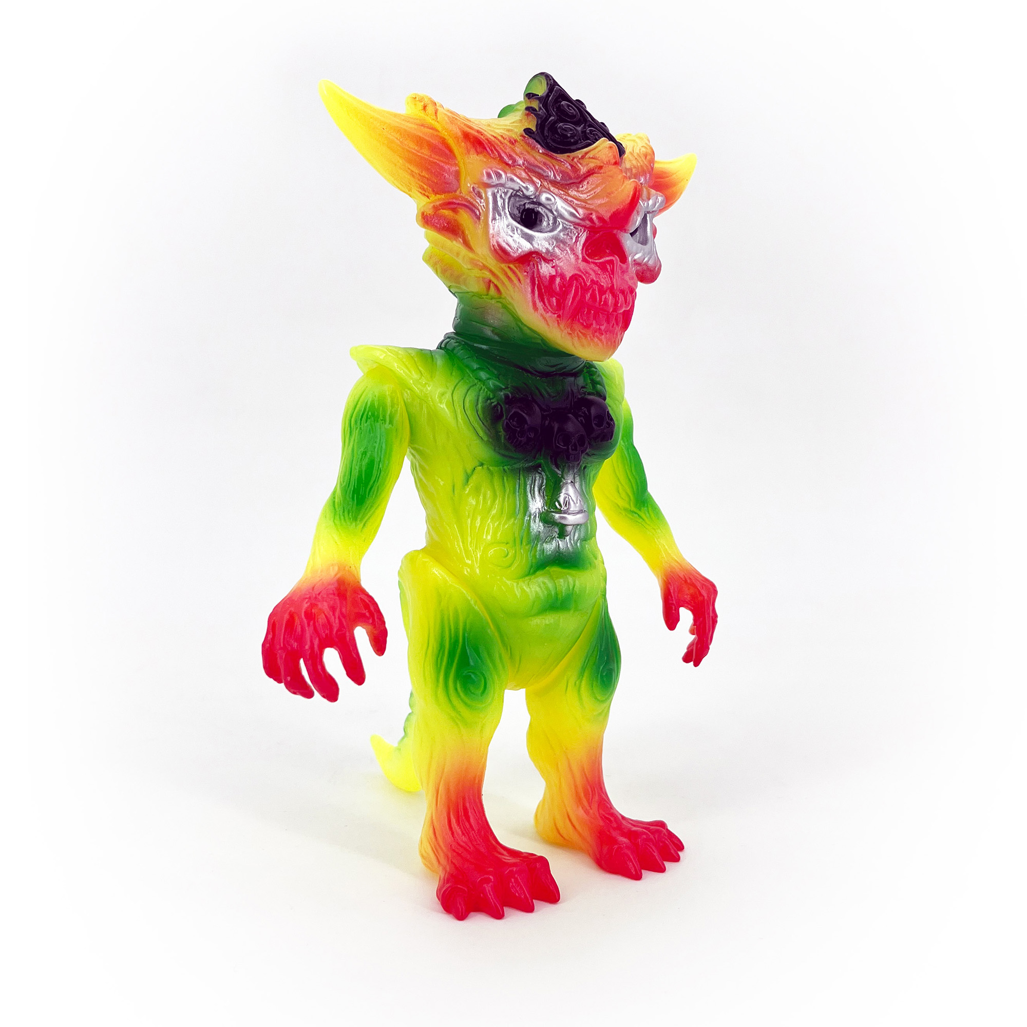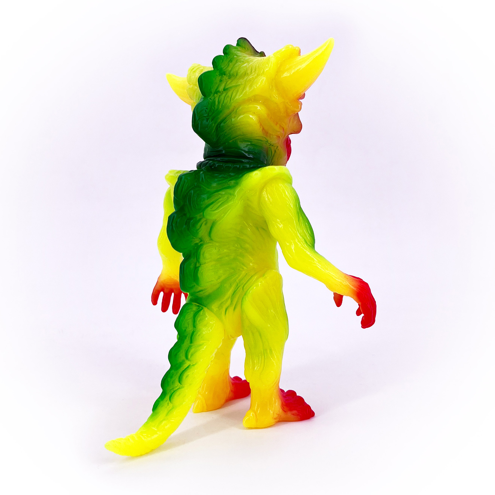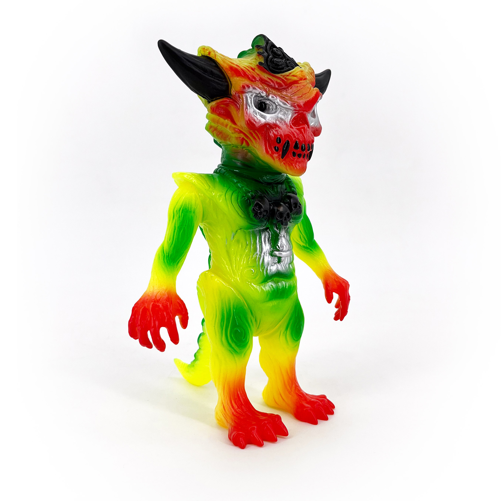 Summer brings this old school colorway from toys gone by. Legend has it classic Japanese toymaker Bullmark, released uniquely painted versions of their vinyl toys in Hawaii to the satisfy demand from the Japanese population there. Keeping that in mind, yellow vinyl has been painted green, red, black, and silver to mimic the original colorway. Black glass eyes add the final touch. $100 each...made in Japan...painted in the USA. Not intended for children under 14 years old.