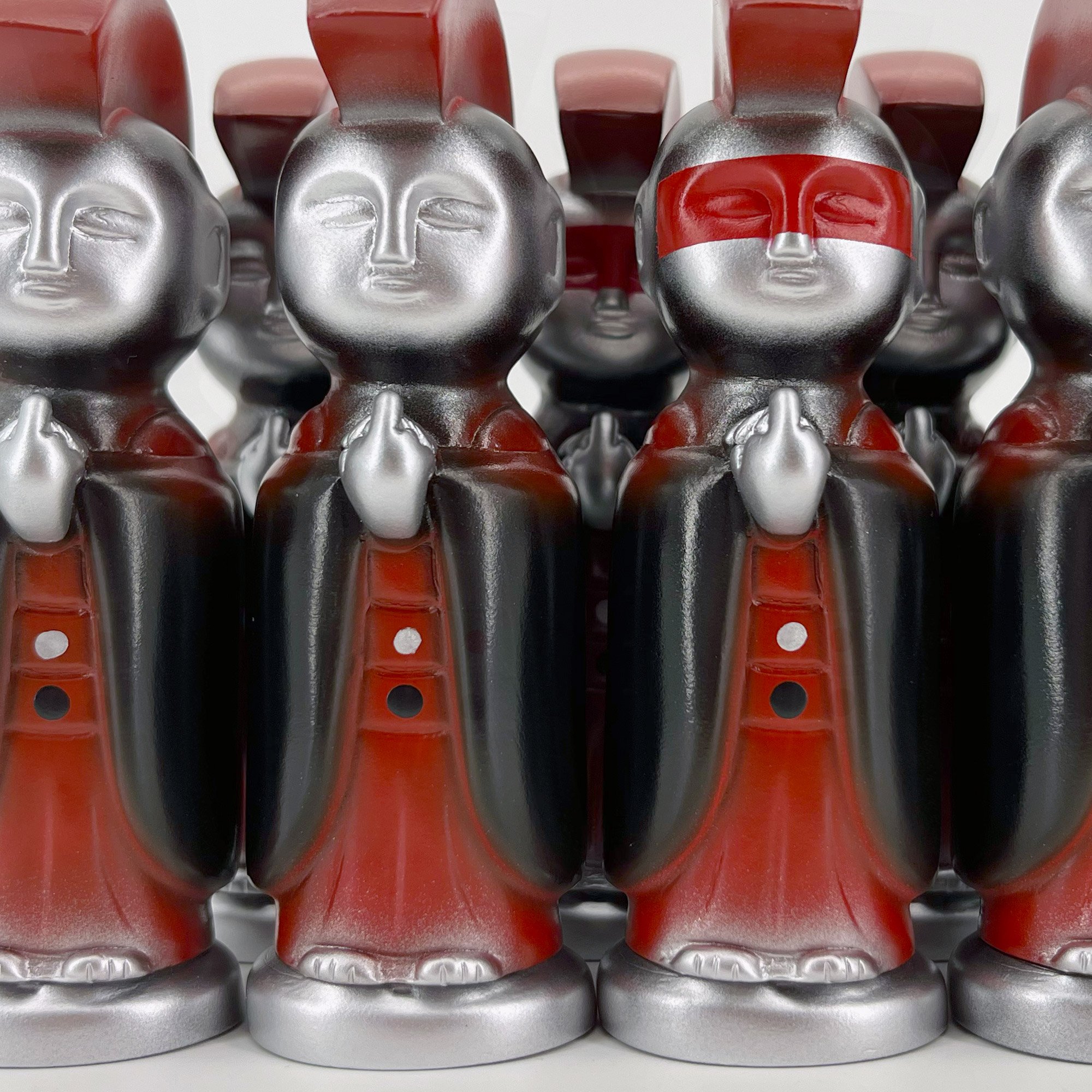 HELL-O-WEEN brings a new army of Jizo-Anarcho. These "ultrathrash" versions pay homage to the classic Gargamel "thrashout" colorway combined with the modern Ultraman Arc designs. Black vinyl has been painted with silver, red and black paints. V1 features more dominant red tones. Sold as blind bags so you won't know if you got one of the masked chase figures until you open it. Made in Japan, painted in the USA. Not intended for children under 14 years old. $30 each.